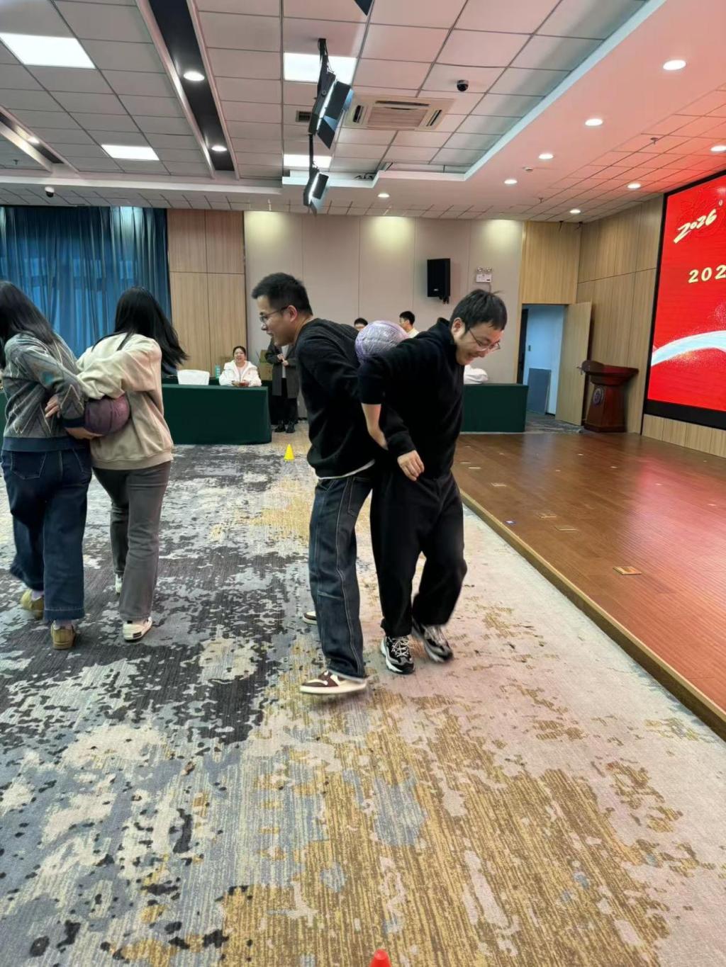 游戏互动环节趣味盎然、暖意十足,成为本次活动的又一亮点。工会精心设计了“你比划我来猜”“牛马送福气”等特色游戏,让大家在轻松愉悦的氛围中增进情谊、凝聚力量。“你比划我来猜”环节中,参赛选手两两搭档,一人通过肢体动作和表情演绎词语,一人奋力猜谜,夸张的比划、默契的配合引得全场哄堂大笑,大家在欢声笑语中考验了彼此的默契度;各项游戏均以团队协作形式开展,大家主动组队、互帮互助,在比拼中增进了解,在协作中凝聚共识,充分展现了工会大家庭团结友爱、拼搏进取的良好氛围。