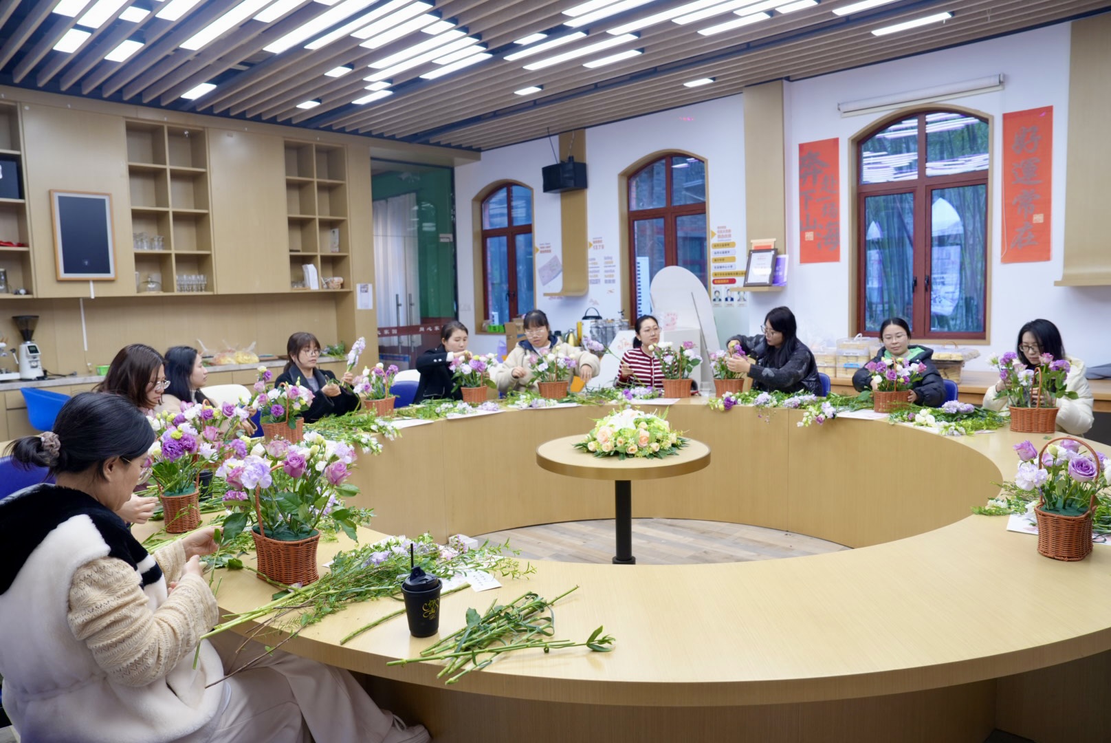 创业学院在仰山咖啡馆举办 “春风如你,熠熠芳华”为主题的庆祝活动。现场气氛温馨雅致,女教职工们齐聚一堂,在醇厚的咖啡香与沁人的花香中,共同绘就了一幅恬静美好的春日画卷。