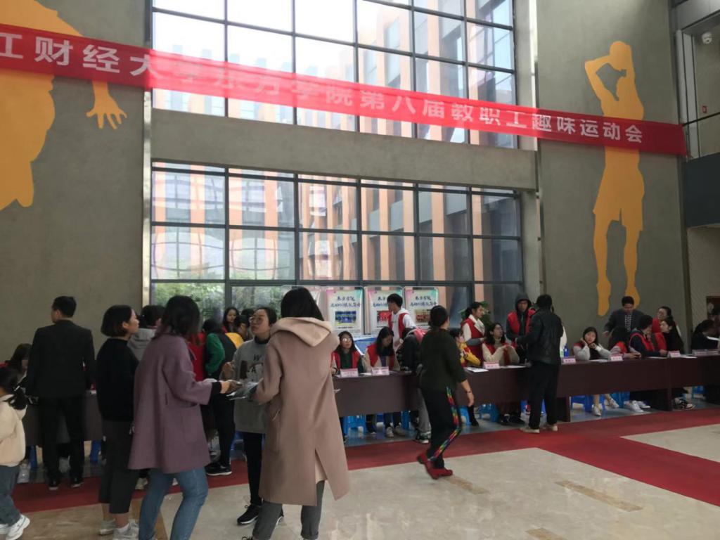 一栖寒萧,冬意渐浓,11月20日下午由学院工会携手体育中心承办的浙江财经大学东方学院第八届教职工趣味运动会在院体育馆顺利举行。此次活动是响应国家“将全民健身上升为国家战略”号召,把校内教职工运动工作落到实处,与趣味性相结合,丰富校园特色文化的一项活动。为了贯彻“参与运动 享乐运动”的思想,力求尽量做到多方面覆盖,把精英式的竞技赛场变为大众化的娱乐环节,在项目上进行了合理挑选,设立了肺呼量测试、弹球掷准、夹球背等多项趣味性项目。