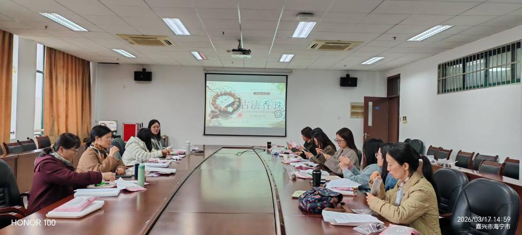 仲春三月,暖意渐浓,芳菲正好,为纪念第116个“三八”国际劳动妇女节,切实关怀学院女教职工身心健康,丰富课余文化生活,传承中华传统非遗香文化,信智学院工会于3月17日精心策划组织合香珠手串手工制作活动,邀请全体女教师暂别繁忙的教学科研与日常工作,在指尖非遗手作中舒缓身心、涵养心境,共度温馨雅致、别具意义的节日时光,沉浸式感受传统香道的独特韵味与文化魅力。